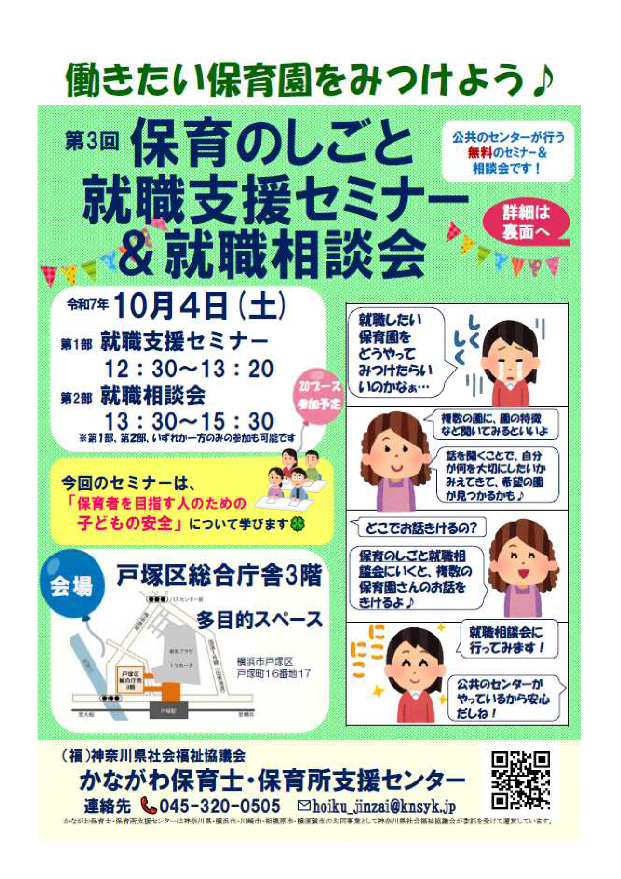 横浜市の戸塚区役所で開催される第3回保育のしごと就職相談会に参加します。